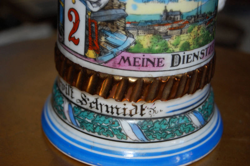 Reservistenkrug, Artillerie, personalisiert, mit Namensleiste, 2. bayr. Luftartillerie-Regiment .5. Batt. Metz, Höhe 27 cm