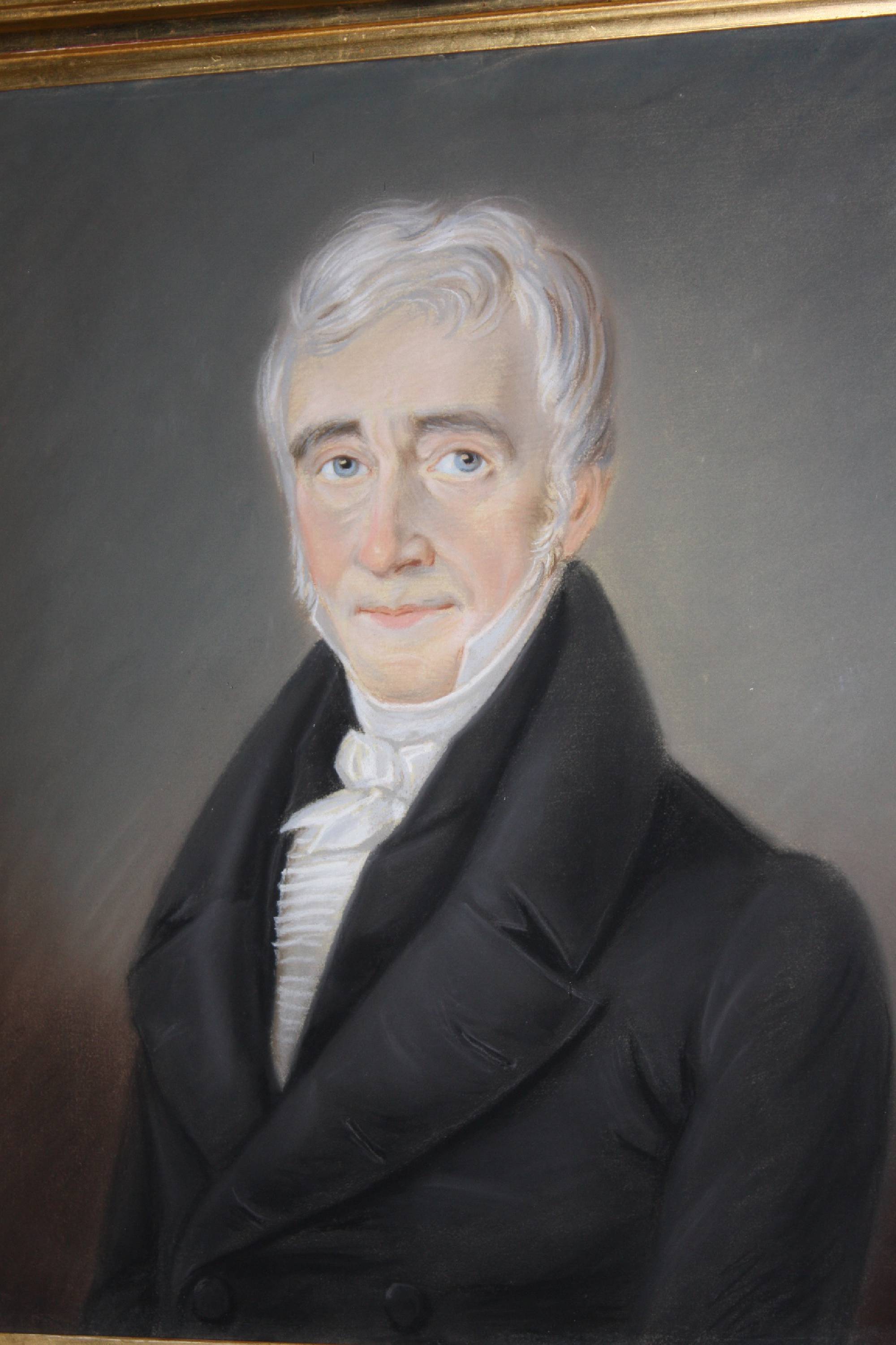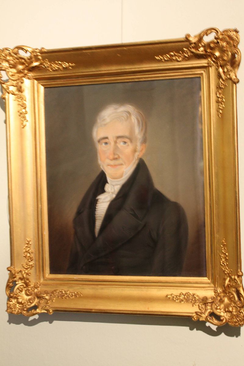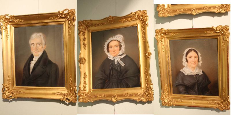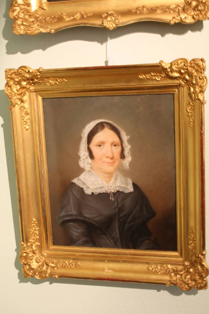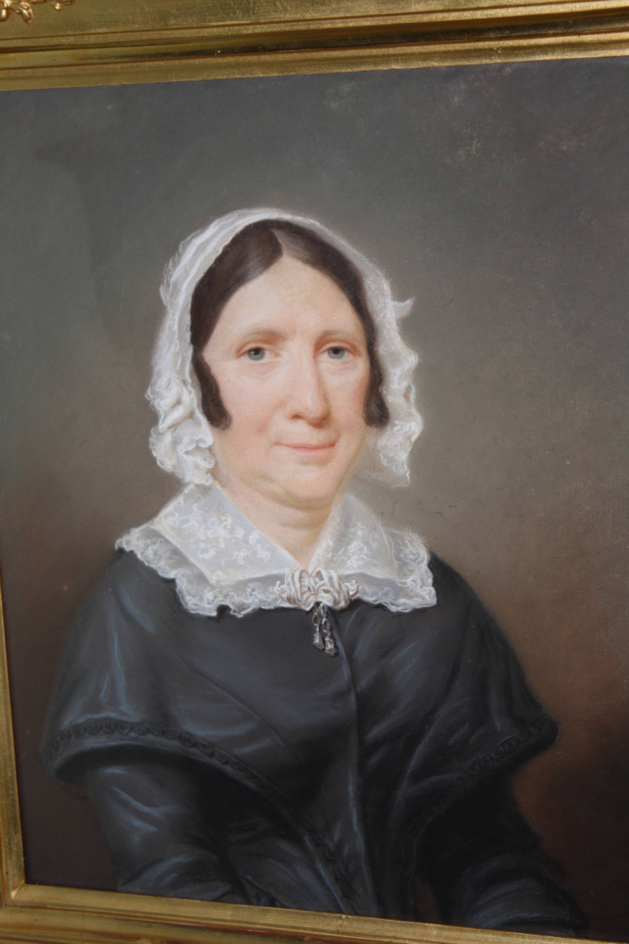 Drei Biedermeier Portraits, ein Herr und zwei Damen, Pastell, gerahmt, hinter Glas, Maße( o. Rahmen): ca. 33 cm x 28 cm