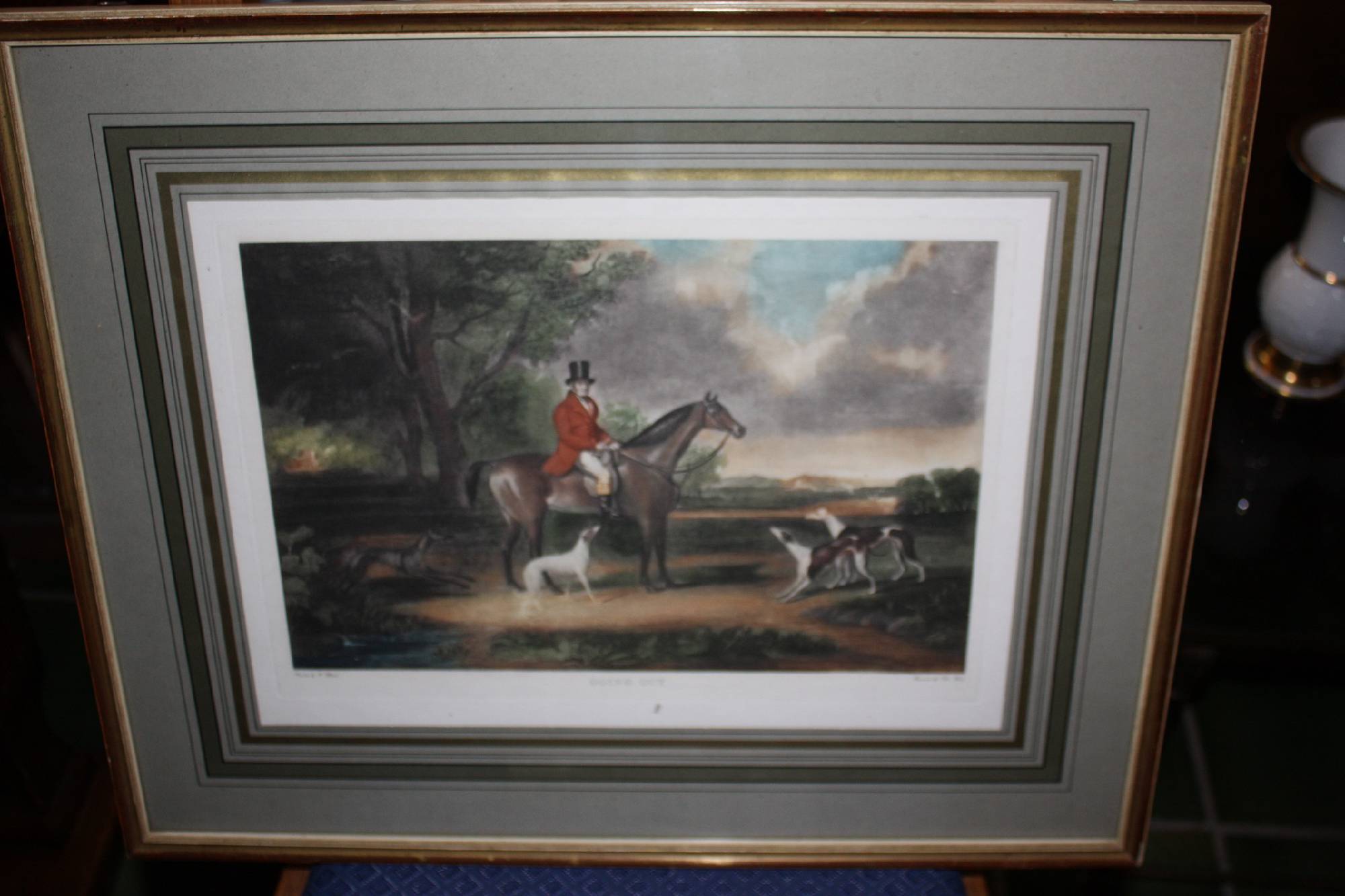 Reiterportrait, englisch, "Going out",kolorierter Stich, gerahmt, hinter Glas, Maße( o. Rahmen): 36 cm x 26 cm