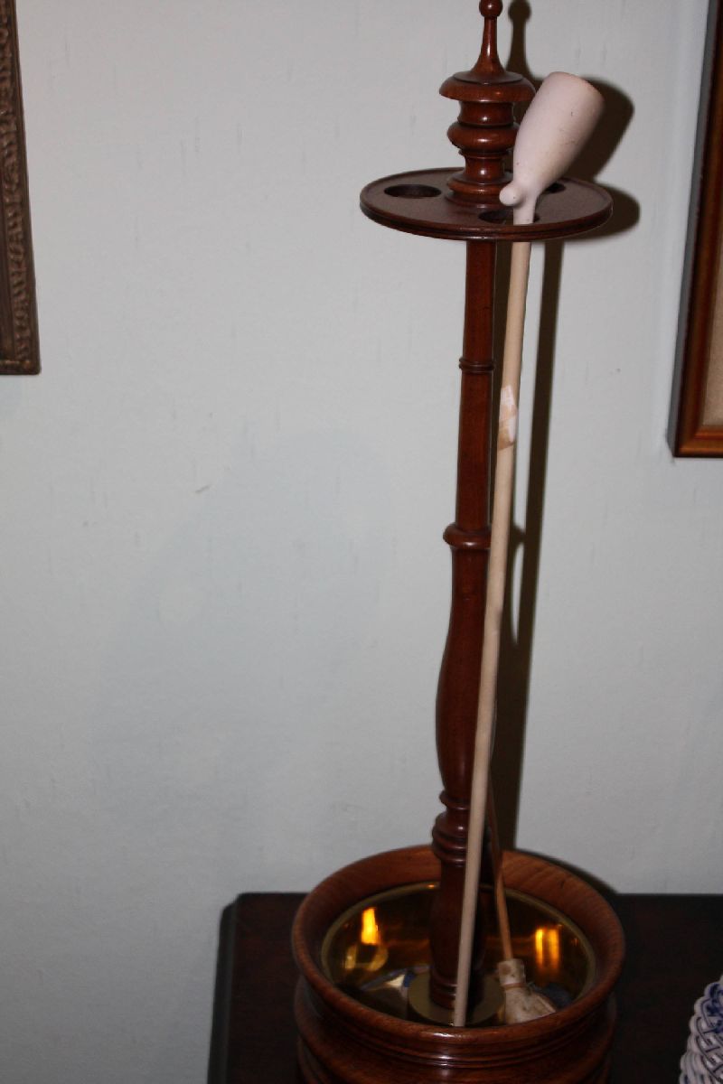 Pfeifenständer, Nussbaum, Messingeinsatz, Tonpfeife,Höhe 60 cm
