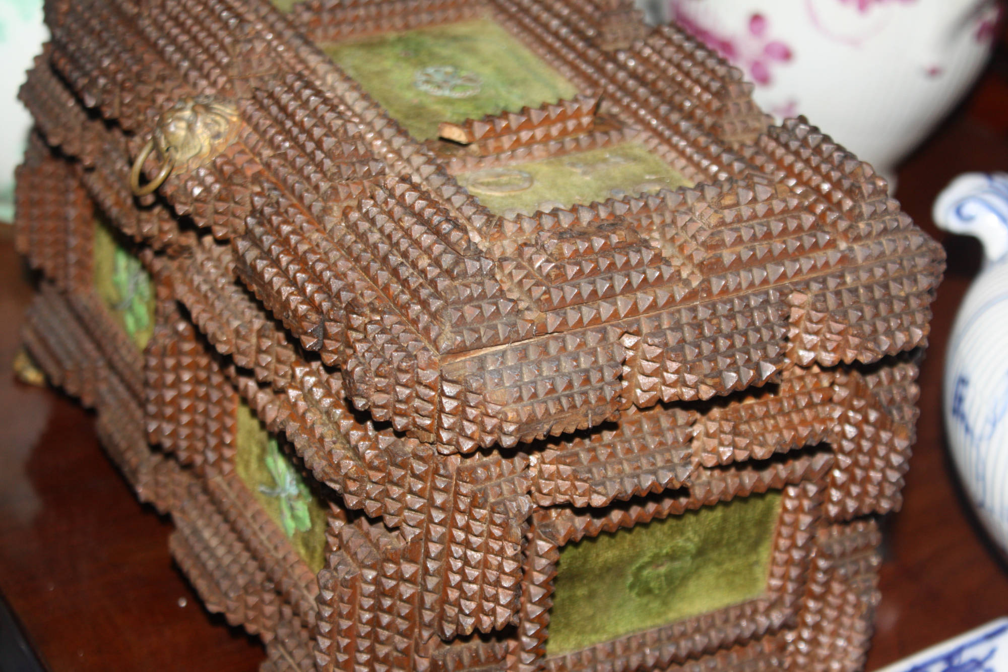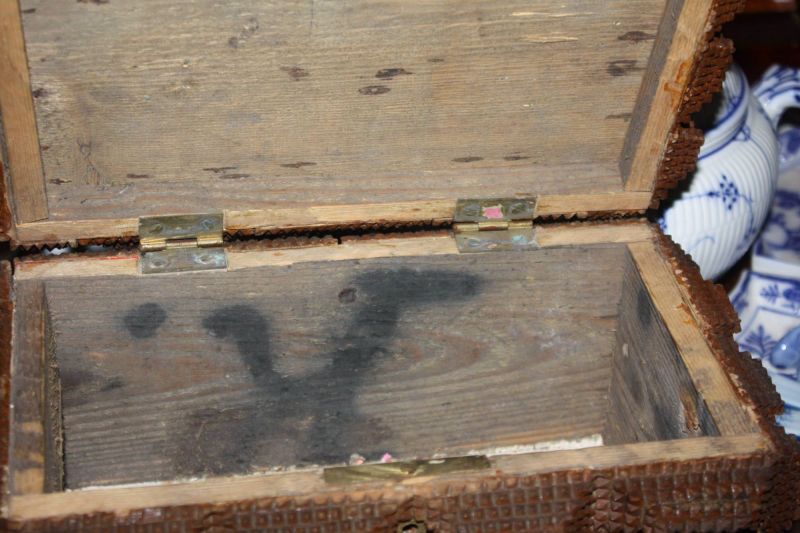 Tramp Art Holzschatulle Kasten um 1900 Breite 28 cm Höhe 18 cm