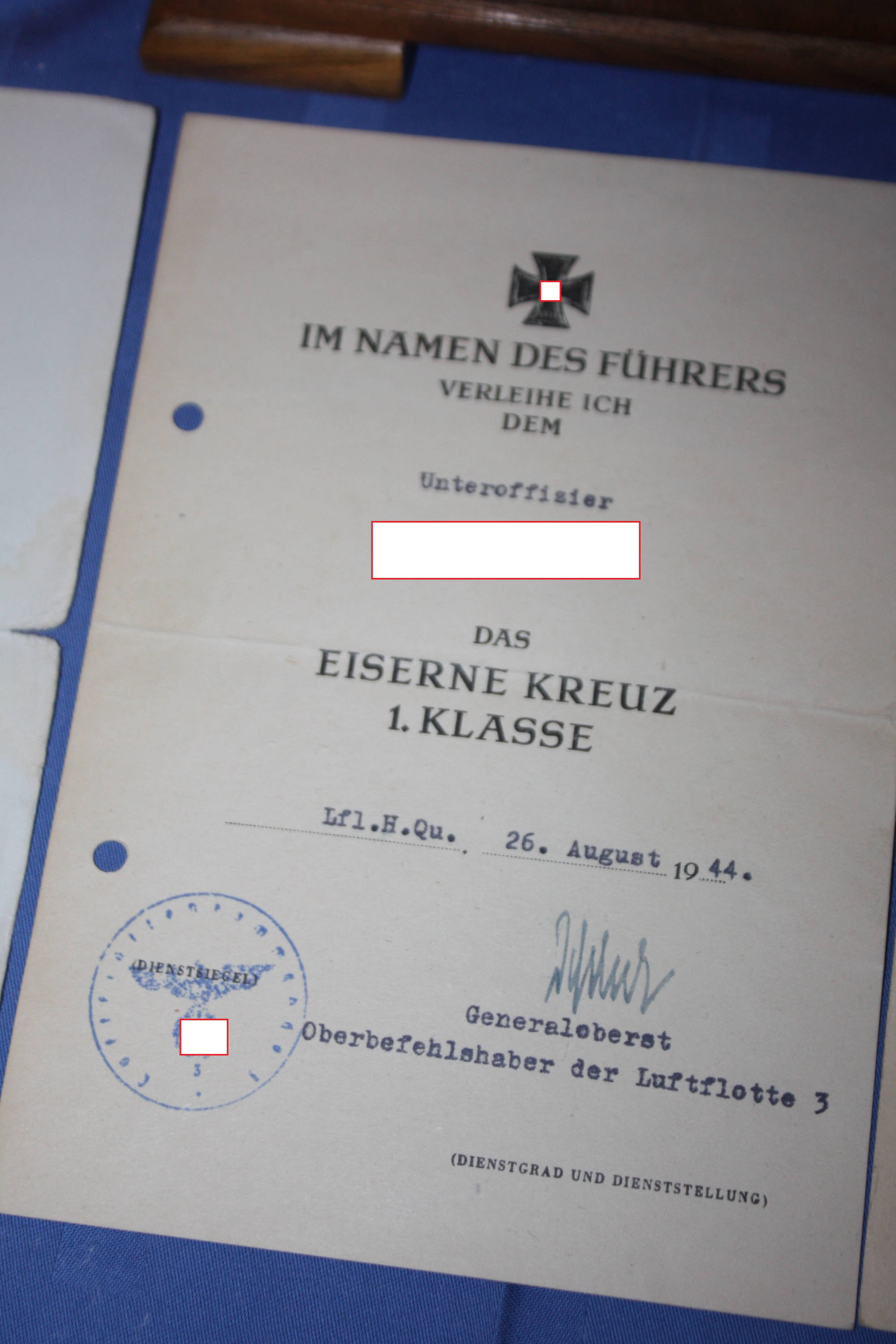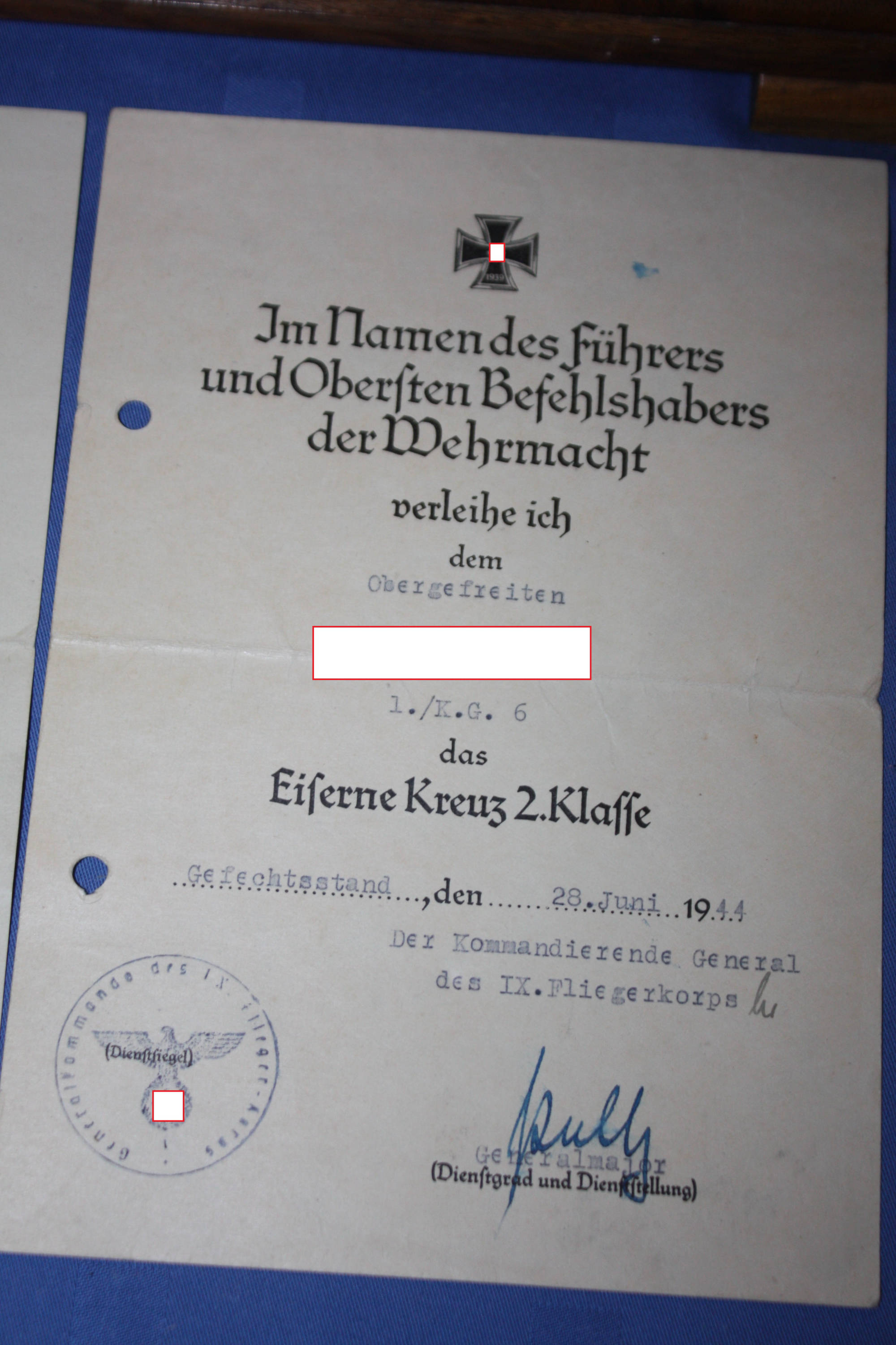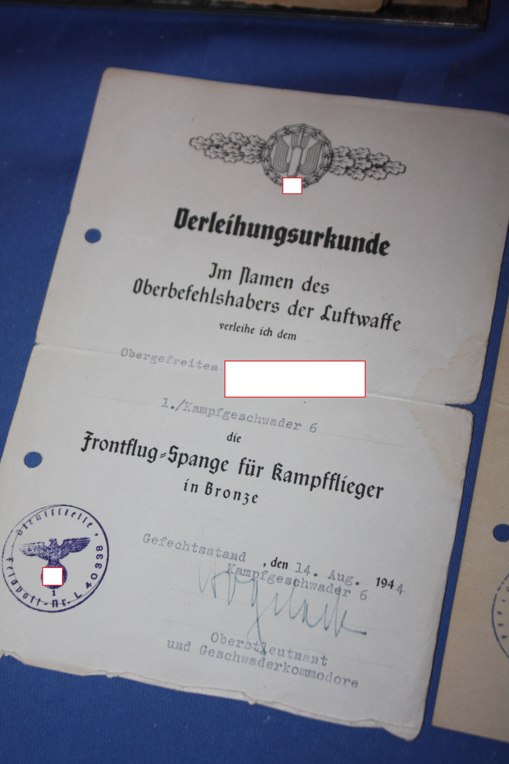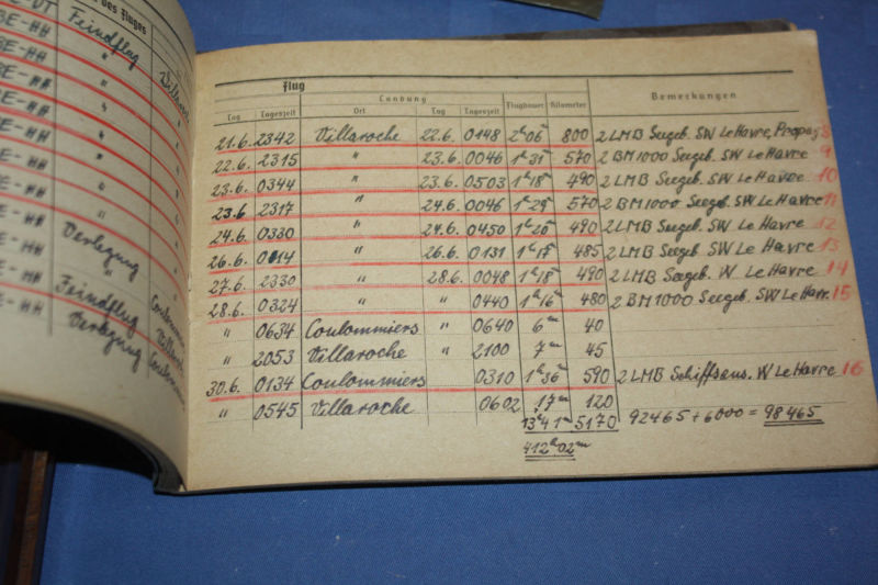 2. Weltkrieg: Musealer Nachlass eines Sturzkampfpiloten, mit allen dokumentierten Kampfeinsätzen, Auszeichnungen: Flugzeugführer Abzeichen, Frontflug Spange in Bronze, Eisernes Kreuz 1. Klasse