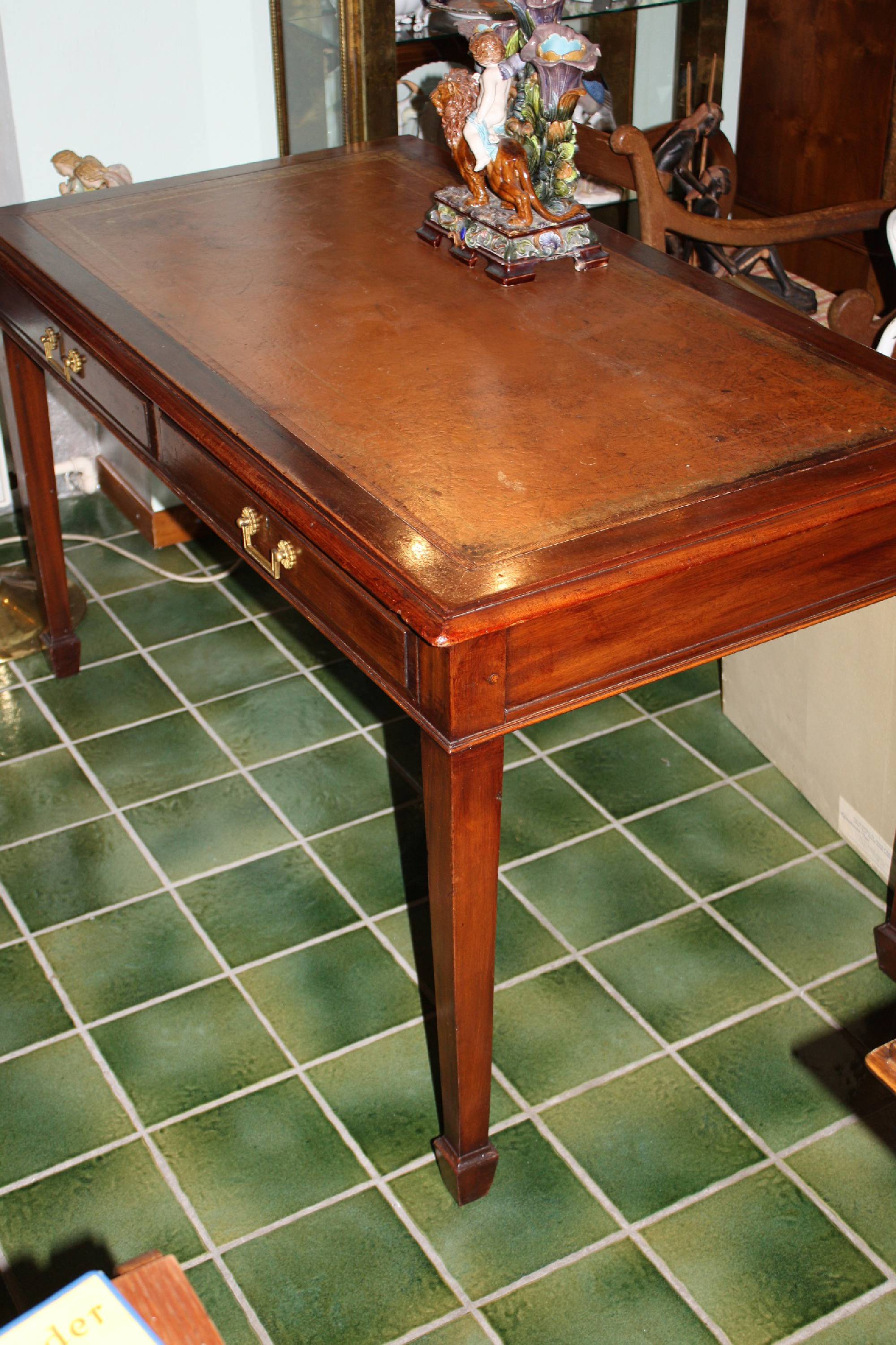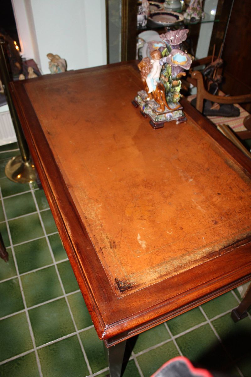 Antiker Schreibtisch, englisch, viktorianisch, Schreibfläche mit Leder bezogen, Höhe 77 cm, Breite 137 cm, Tiefe 77 cm
