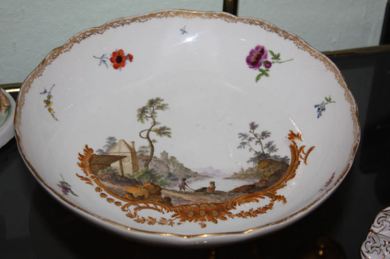 Meissen Teller, handgemalte Landschaftsszene, 18. Jh., Schwertermarke mit Punkt, bis 1773, Durchmesser 24,3 cm