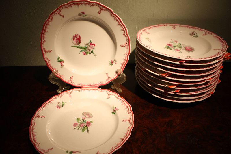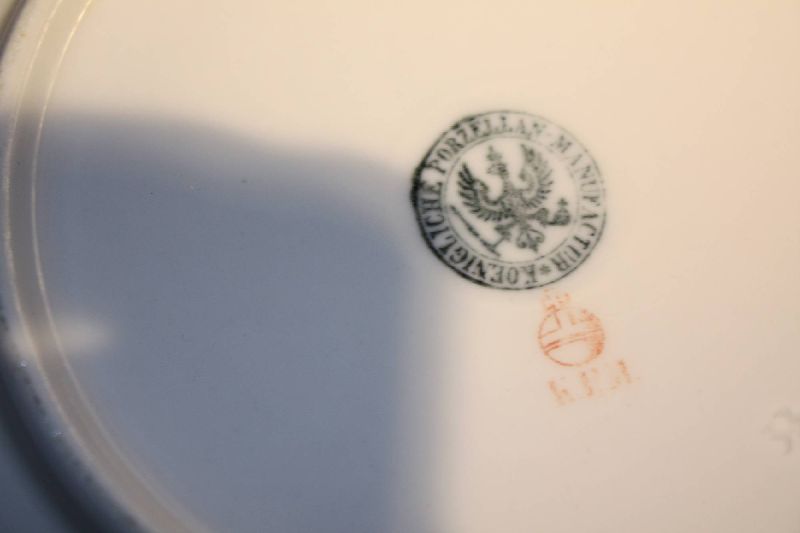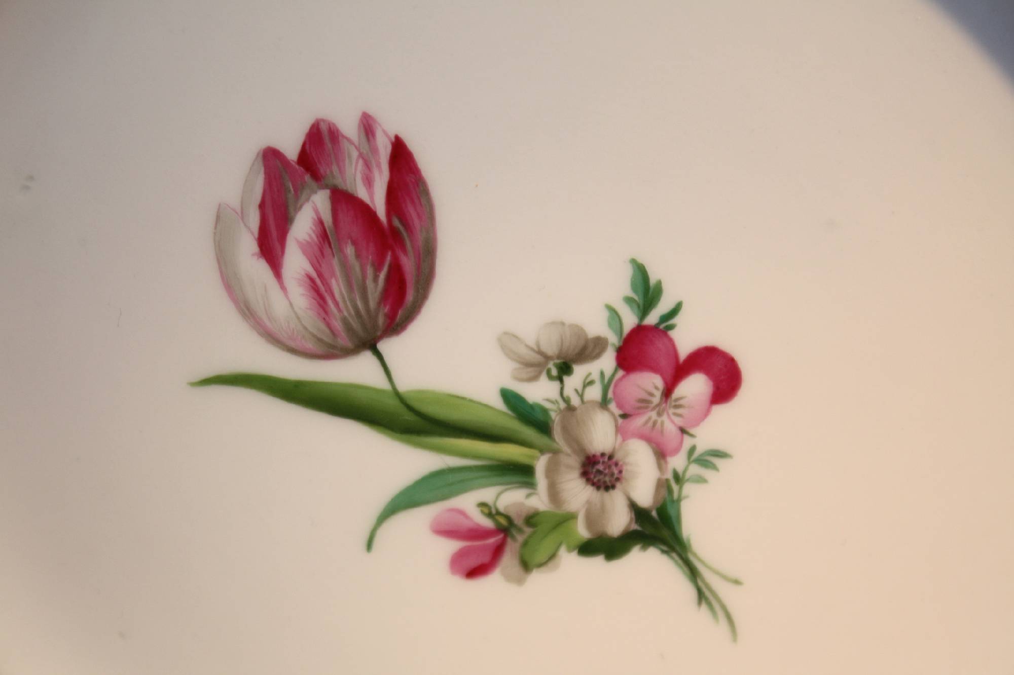 12 Porzellan Kuchenteller, um 1900, KPM Berlin, 12 unterschiedliche handgemalte Blumenmotive, Reichsapfel mit Pfennigmarke, Durchmesser: 21 cm